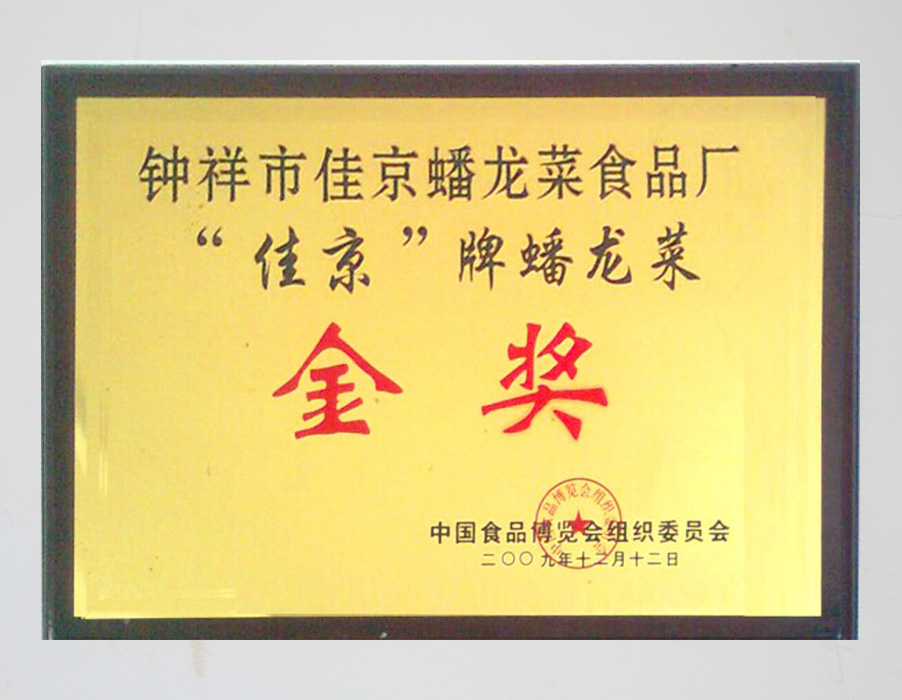 《佳京》牌蟠龍菜榮獲金獎(jiǎng)